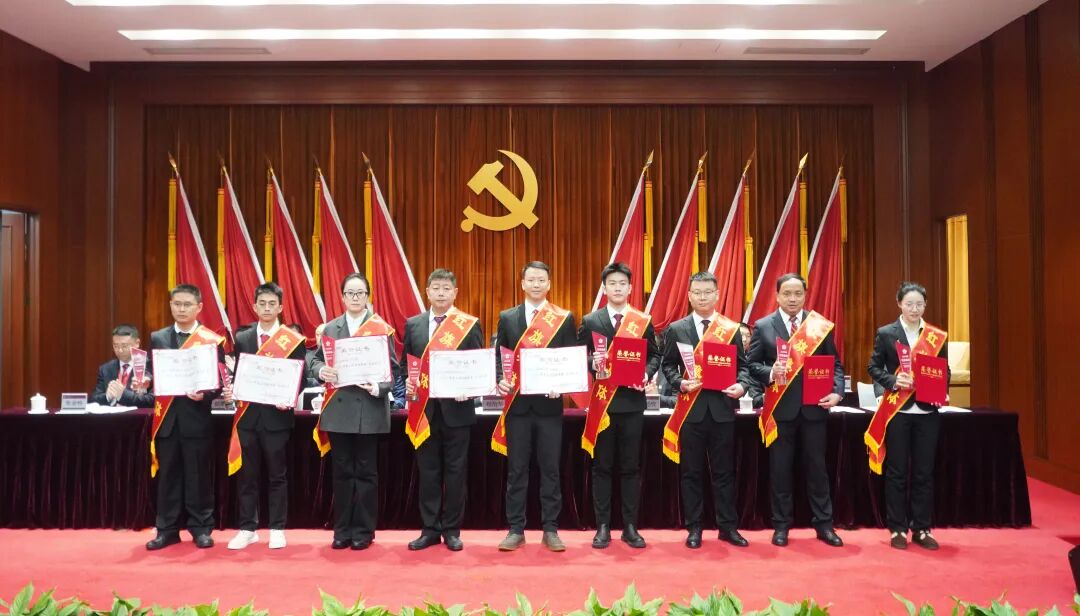 会议现场表彰了2025年度公司10个红旗集体、8个红旗班组、10名劳动模范、5名铜都工匠。